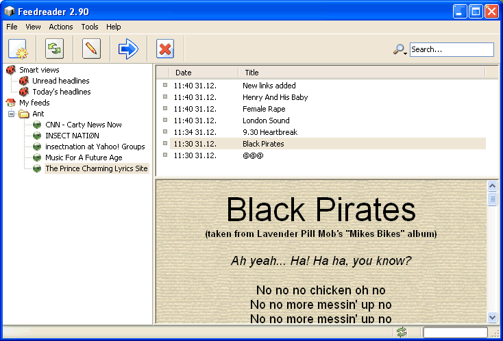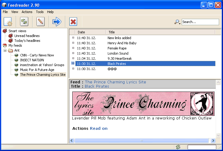 Clicking the pop-up (or just opening FeedReader) will bring up a screen like this: